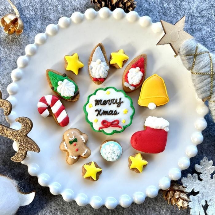 サンタクロース・ジンジャーブレッドマン・ステッキ・ベル・雪の結晶・お星様・メッセージのクッキー(13枚)